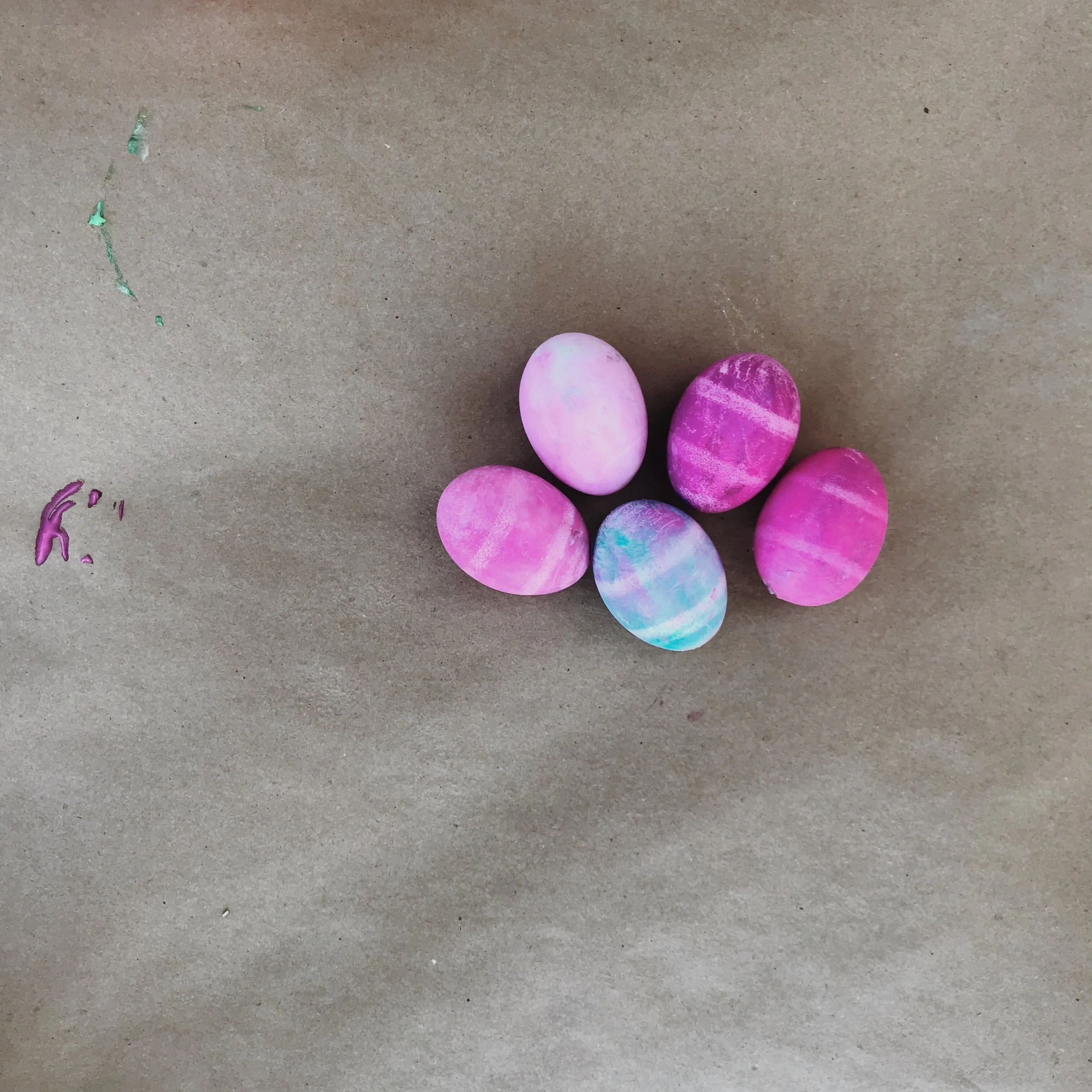 This year we did a fun shaving cream method! We did NOT eat these eggs. This was simply for fun to see what kind of cool colors we could get! If we would've let them sit longer I think we could've gotten more of the tie dye look, but we still loved them!