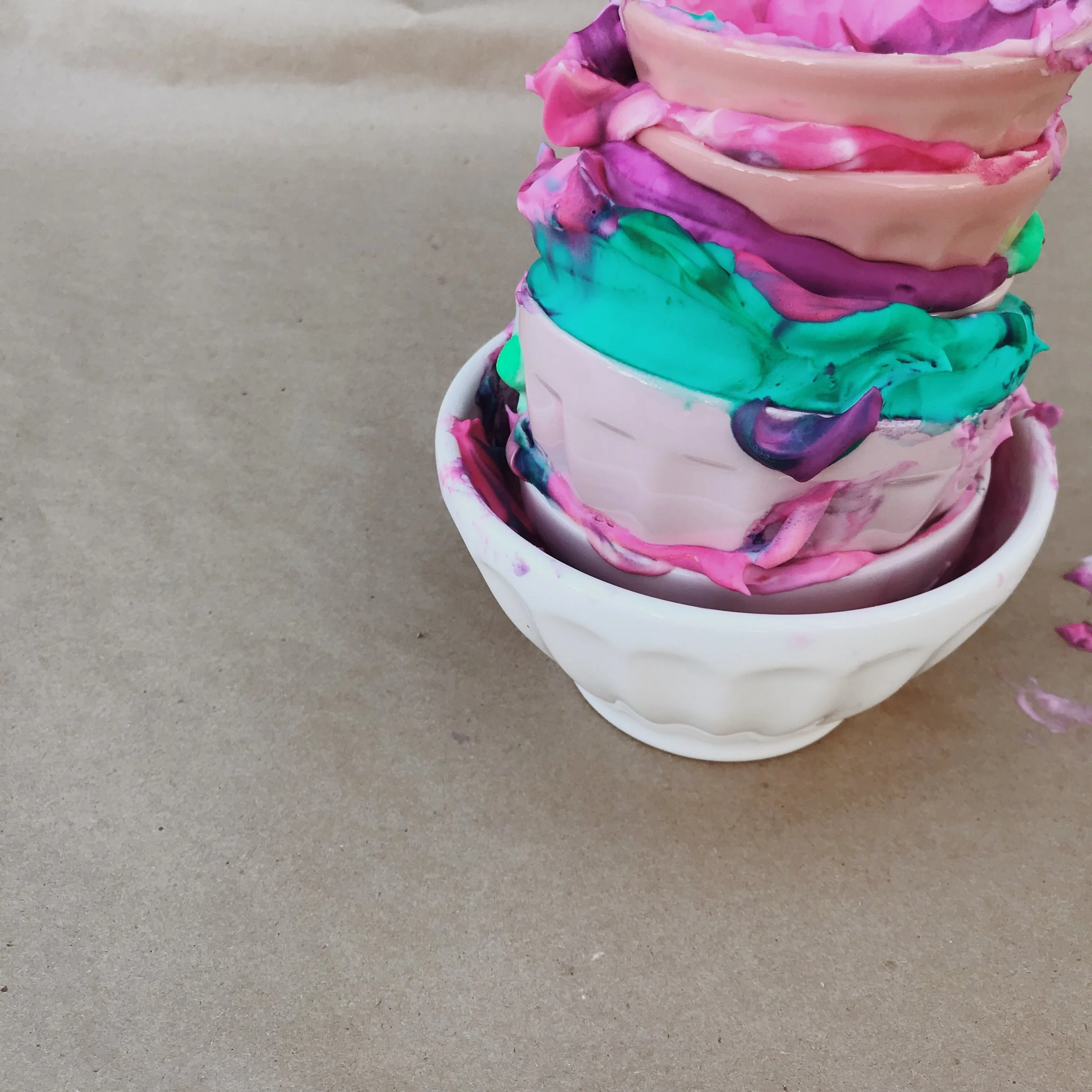 Step 1. Fill bowls with shaving cream.