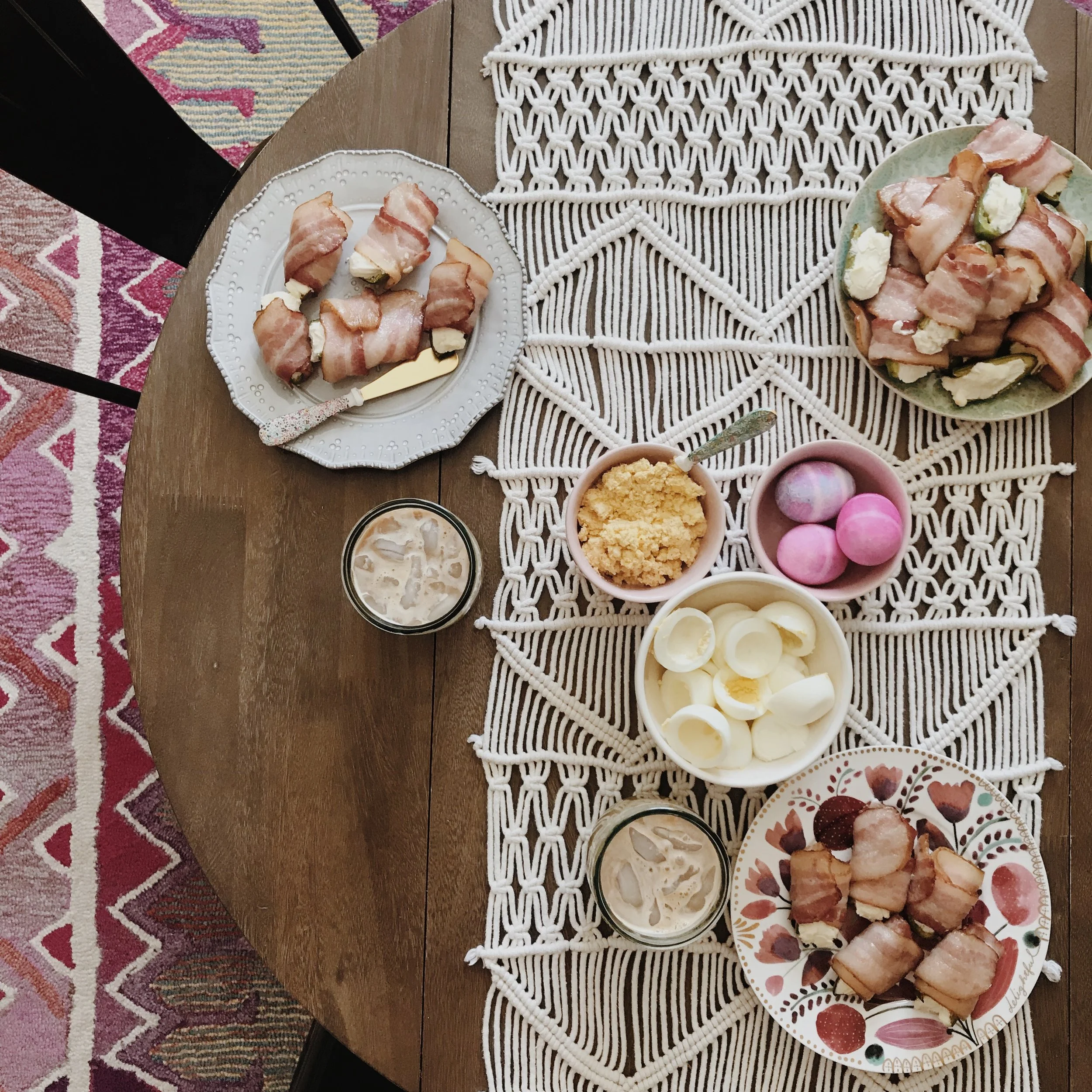 Blake and I are foodies, that's for sure. We started a new tradition last year of having a deviled egg bar and Jalapeño poppers for brunch and it didn't disappoint! They're two of our all time favorite appetizer type foods, but we made enough for it to be a meal! We also love us a good midday iced coffee!
